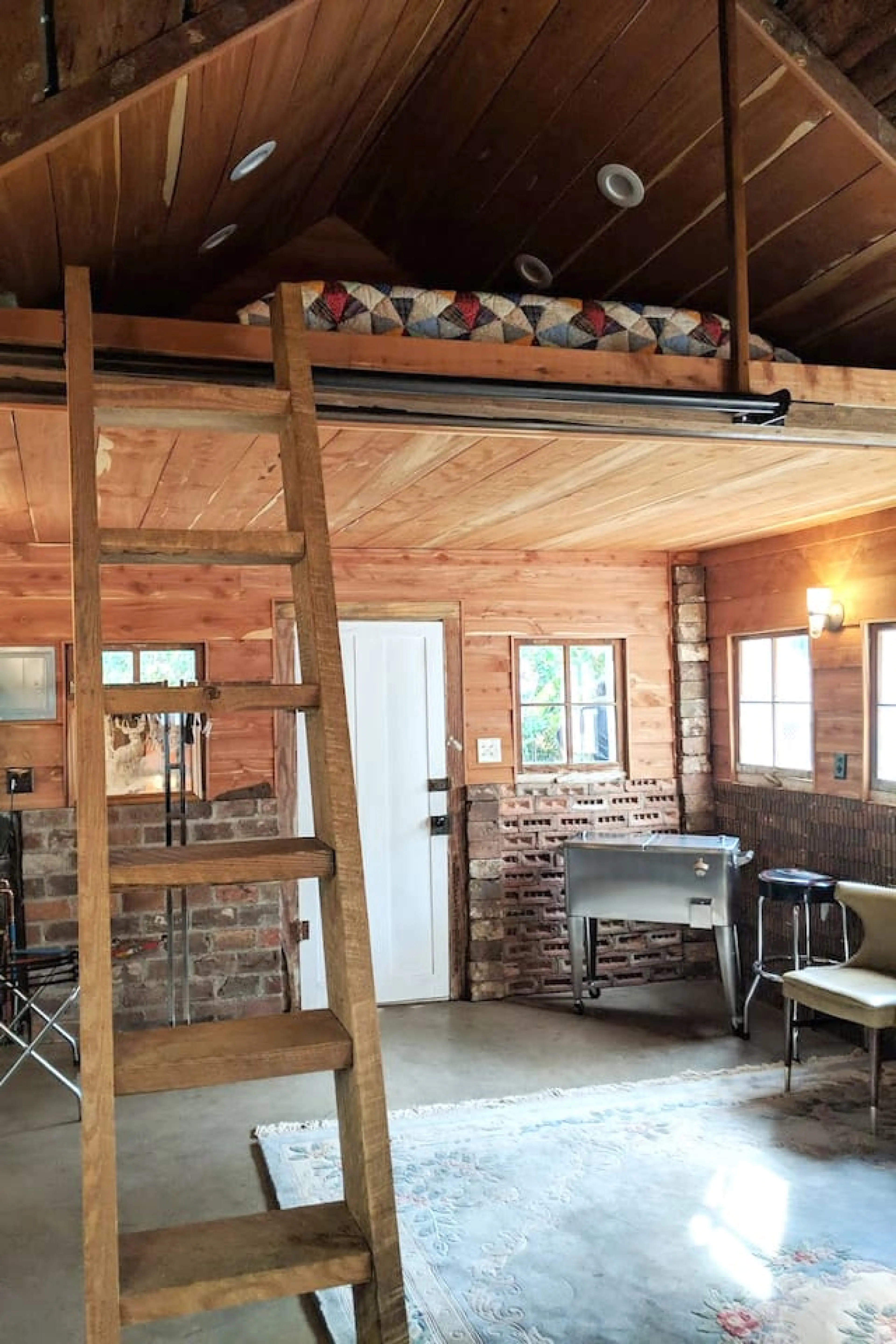Private bungalow! 1st floor=family room w/ cable TV & WiFi. Double doors open to fire-pit w/ pasture views. 1.5 bathrooms w/ custom marble shower. Fridge/Freezer & microwave. Access Loft via a custom library ladder! Loft has high end foam-Queen Bed. Farm sink, dining table & chairs on patio....